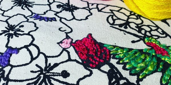 Embroidery fascinates me. In my fiercely creative delusion I want to try so many crafts. Assuming it was easy, I went for it with available materials. The pictured canvas bag was arduous to thread the floss through the bag. The project is not done. I love how well I screen printed my art on the bag, though.